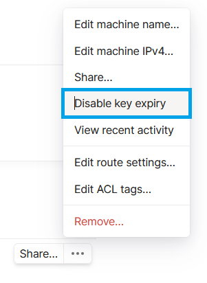 Lastly go back to the dashboard again and click the 3 dots next to your VPN Server and click "Disable Key Expiry"
