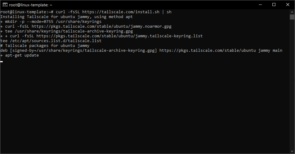 Once Curl is installed, We can now install tailscale with the following command