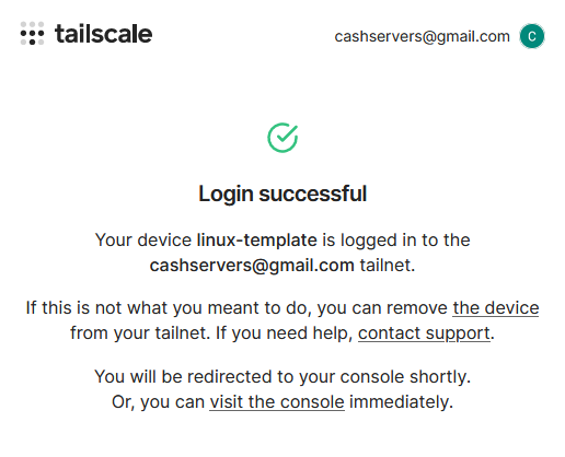 Once you copy that link into your browser, Tailscale will again ask you to login